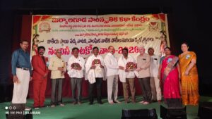 తెలంగాణ రాష్ట్ర భాషా సాంస్కృతిక శాఖ మరియు ఫిల్మ్ డెవలప్మెంట్ కార్పొరేషన్.. మిర్యాలగూడ సాంస్కృతిక కళా కేంద్రం మిర్యాలగూడ కళాభారతి ఆడిటోరియంలో నిర్వహిస్తున్న నందినీ అవార్డ్స్ 2026 జాతీయస్థాయి పద్య నాటక సాంఘిక నాటక పోటీలు మరియు నృత్యోత్సవాలు నాల్గవ రోజు ప్రముఖ పారిశ్రామికవేత్తలు కర్నాటి రమేష్ బండారు కుశలయ్య గొల్ల రామశేఖర్ లు జ్యోతి వెలిగించి ప్రారంభించారు. నాటక రంగంలో దినదినాభివృద్ధి చెందుతూ…ఢిల్లీకి చేరిన మిర్యాలగూడ ఖ్యాతి దీనికి విశేష కృషి చేస్తున్న మిర్యాలగూడ సాంస్కృతిక కళాకేంద్రం వ్యవస్థాపక అధ్యక్షులు తడకమళ్ళ రామచంద్రరావు సెక్రటరీ పులి కృష్ణమూర్తి శర్మ కోశాధికారి పుల్లాభట్ల లక్ష్మీనారాయణ శర్మ శ్రమ వెలకట్టలేనిదన్నారు. మిర్యాలగూడకు ఇంతటి ఖ్యాతిని అందించిన కళాకారులకు ఏమిచ్చినా తక్కువే అవుతుంది రేపటి తరానికి ఈ నాటికలు కనుమరుగు కాకుండా ఉచిత నటనకు సంబంధించిన తరగతులు ప్రారంభించాలని అందుకు మా వంతు సహాయ సహకారాలు ఎల్లవేళలా ఉంటాయన్నారు. ముందుగా పాటల పోటీలను నిర్వహించి అనంతరం నాటికల ప్రదర్శన నిర్వహించారు. నాటికల అనంతరం నటీనటులకు.. నిర్వాహకులకు పారితోషకంతో పాటు షీల్డ్లు ప్రశంసా పత్రాలను అందజేశారు.